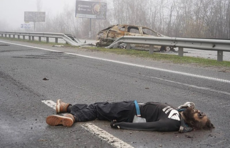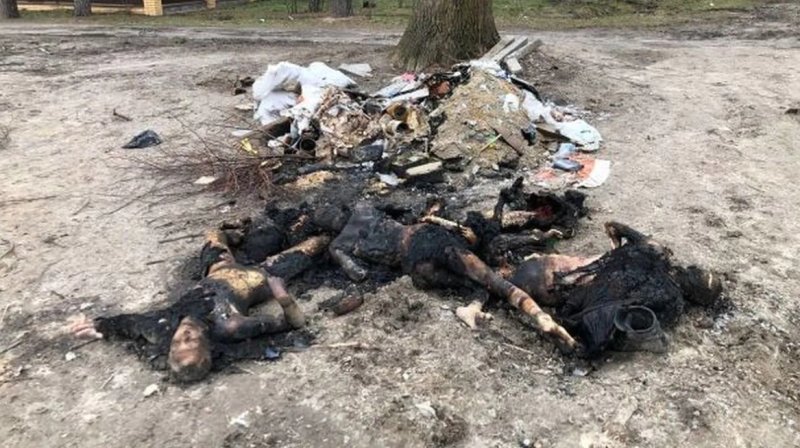 "Earlier on soldiers made a ghastly discovery. On the Kyiv-Zhytomyr route, just some tens of kilometers from the capital