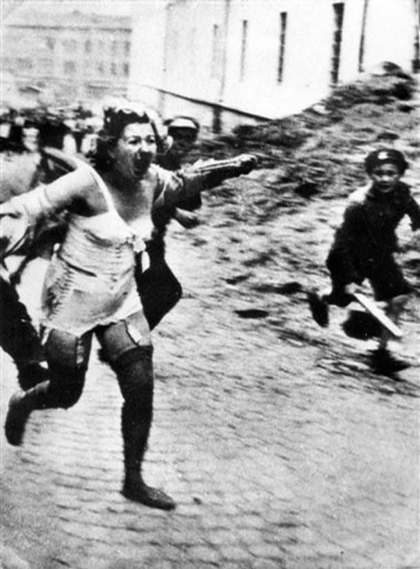 They didn't really suffer... They were allowed to tyrannize the Jews and others... The photo shows the events of the pogrom in Lvov 30.06-2.7.1941. Look at these spiritualized faces.