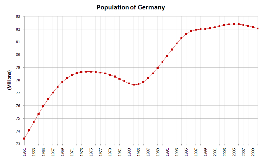 You complain that Germany is in the same situation, but it clearly is not. I'm attaching below a chart of the four countries demographic history over the past half century roughly - with Germany first.